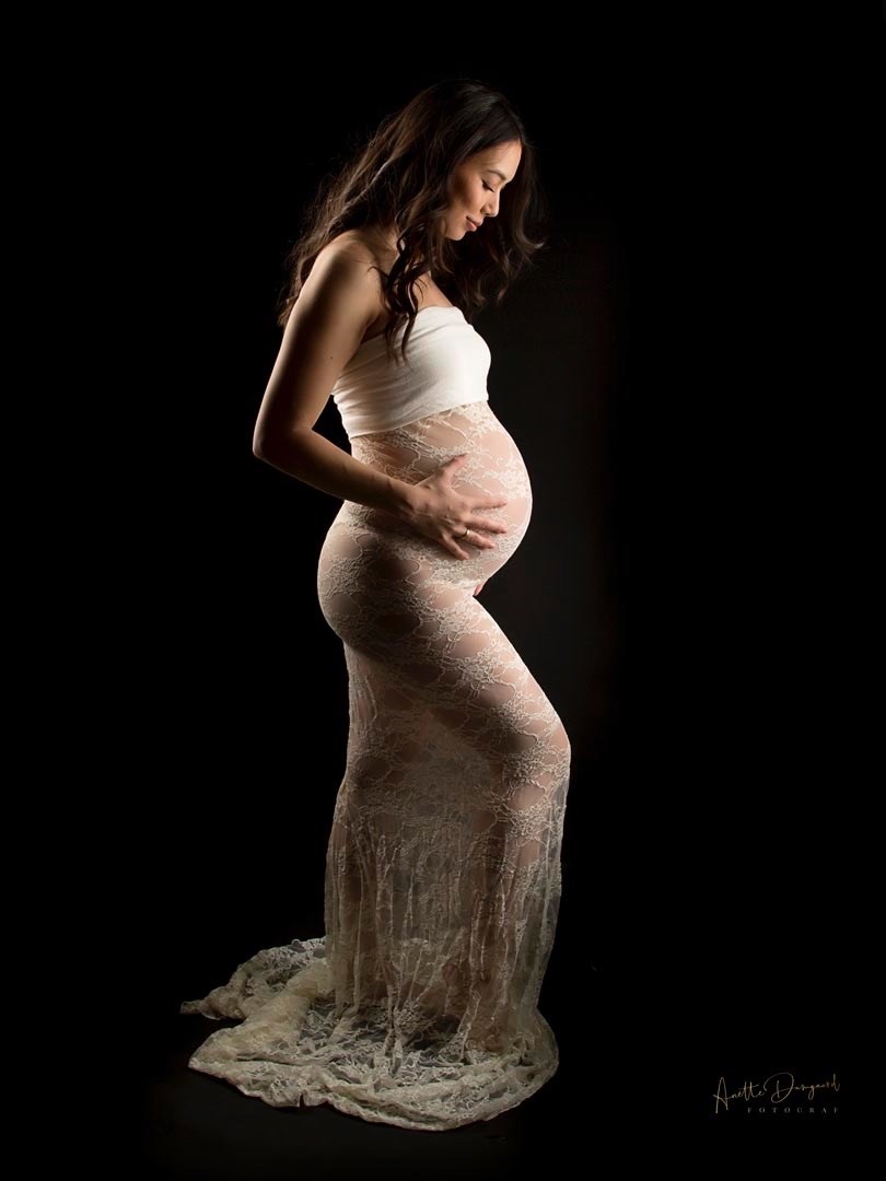 enten tidligt eller sent i forløbet, mest optimale er ca uge 32 så bestil tid hos fotograf Anette Damgaard.